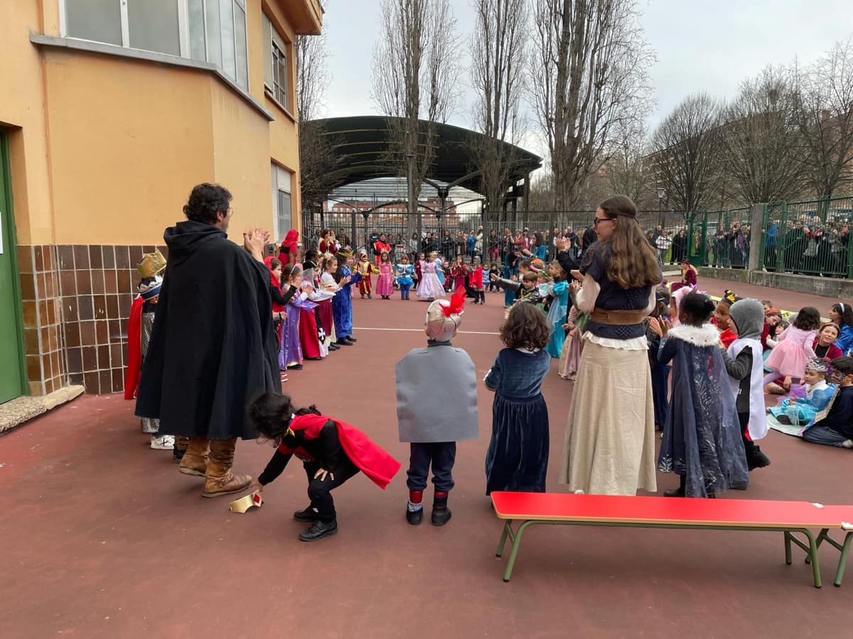 El viernes 9 de febrero por la mañana el alumnado y profesorado cambiamos los mandilones por trajes medievales. En las aulas, el tentempié estuvo acompañado de batidos de chocolate.