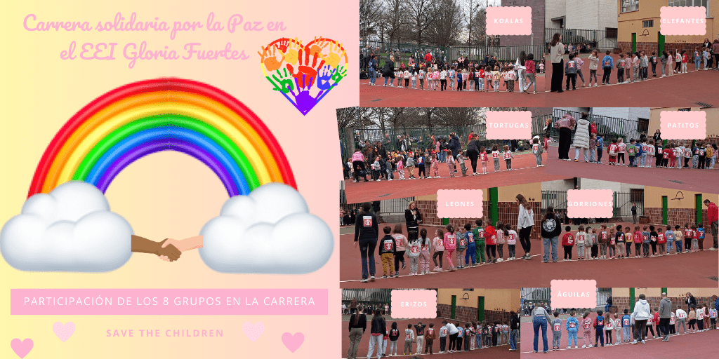 El viernes 30 de enero se celebra el Día de la Paz y, como en cursos anteriores, hemos llevado a cabo una carrera solidaria en el patio del colegio colaborando con la ONG SAVE THE CHILDREN. Debido a las fuertes lluvias, la carrera se pospuso al martes 3 de febrero. Cada aula realizó su carrera y posteriormente tuvo lugar la carrera para los adultos que quisieron participar.