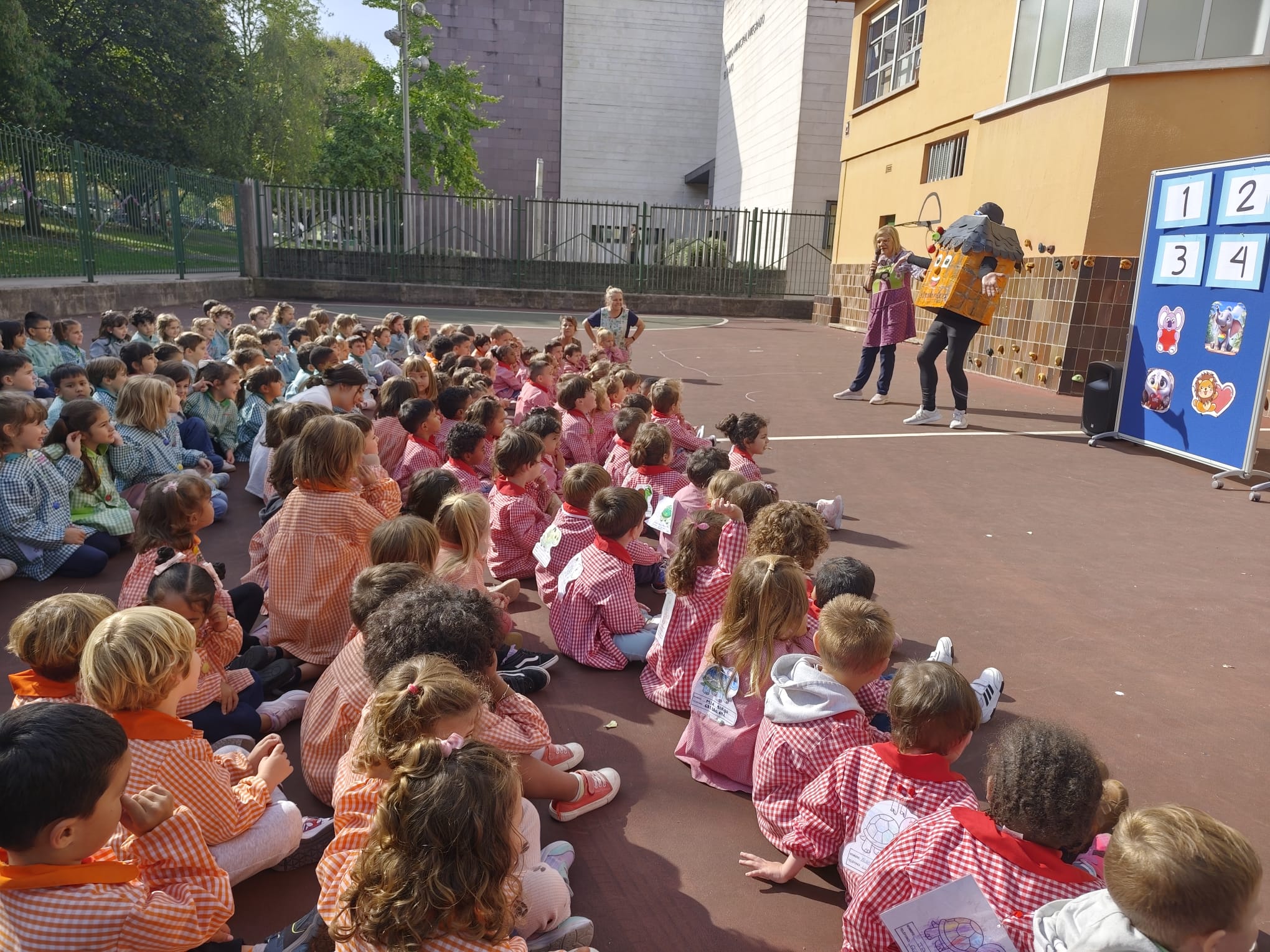 El alumnado se organizó por grupos-aula y, al comenzar el juego, Colorines lanzaba el dado. Tras decir en voz alta el número obtenido, se buscaba en el panel la tarjeta correspondiente y se descubría la emoción escondida. A partir de ahí, todos participaban siguiendo las consignas de Colorines: