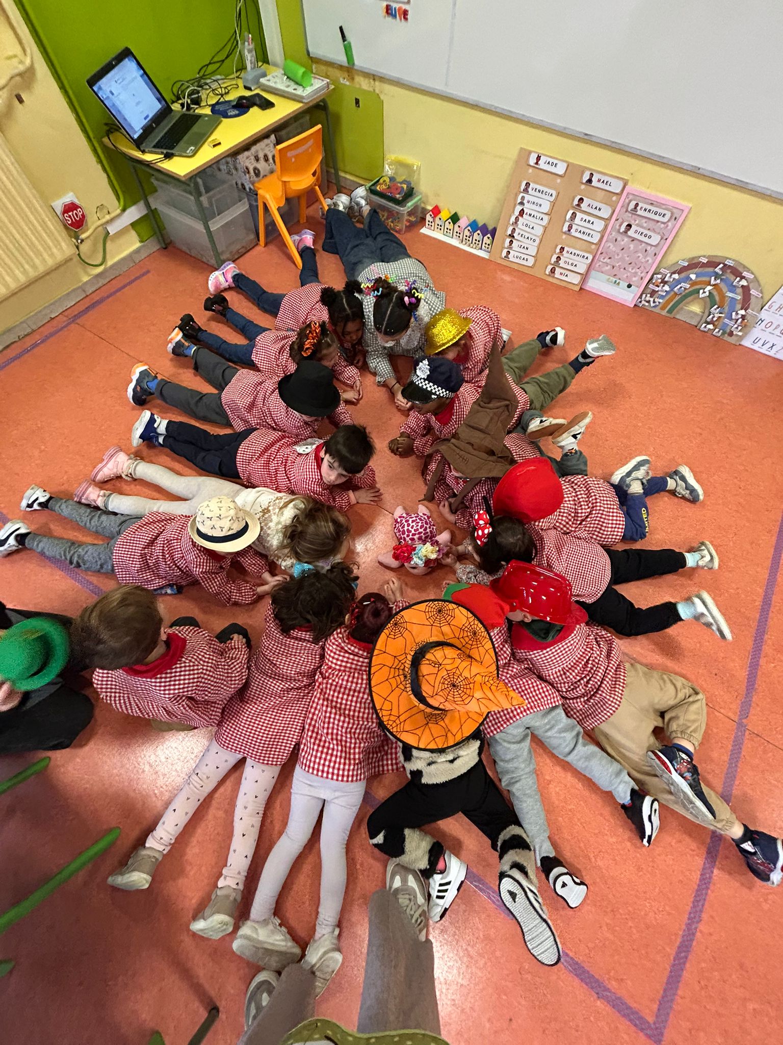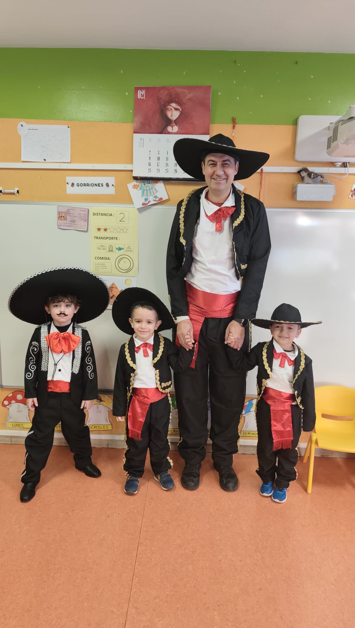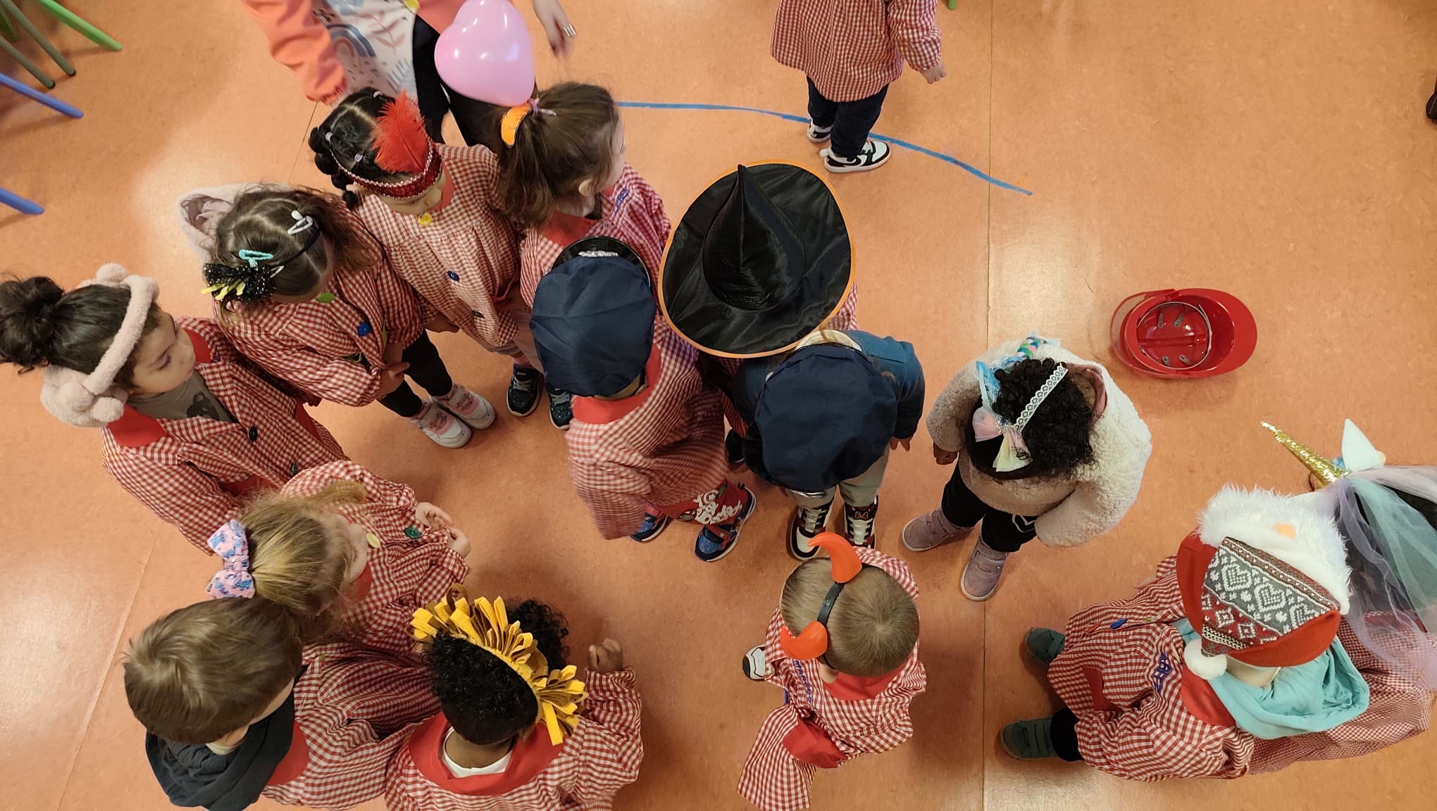 Este año hemos querido mantener la tradición: ¡La Patarrona! Una dinámica muy divertida y creativa que ya se celebra en lugares como Tenerife, Cádiz o Extremadura. La idea de “La Patarrona” es que durante la semana de carnaval cada día las niñas y niños lleven un complemento diferente. El lunes, todos llevamos algo en la cabeza, el martes en el cuello, el miércoles fuimos con zapatos distintos, y el jueves… ¡todas y todos disfrazados de todos los países del mundo!