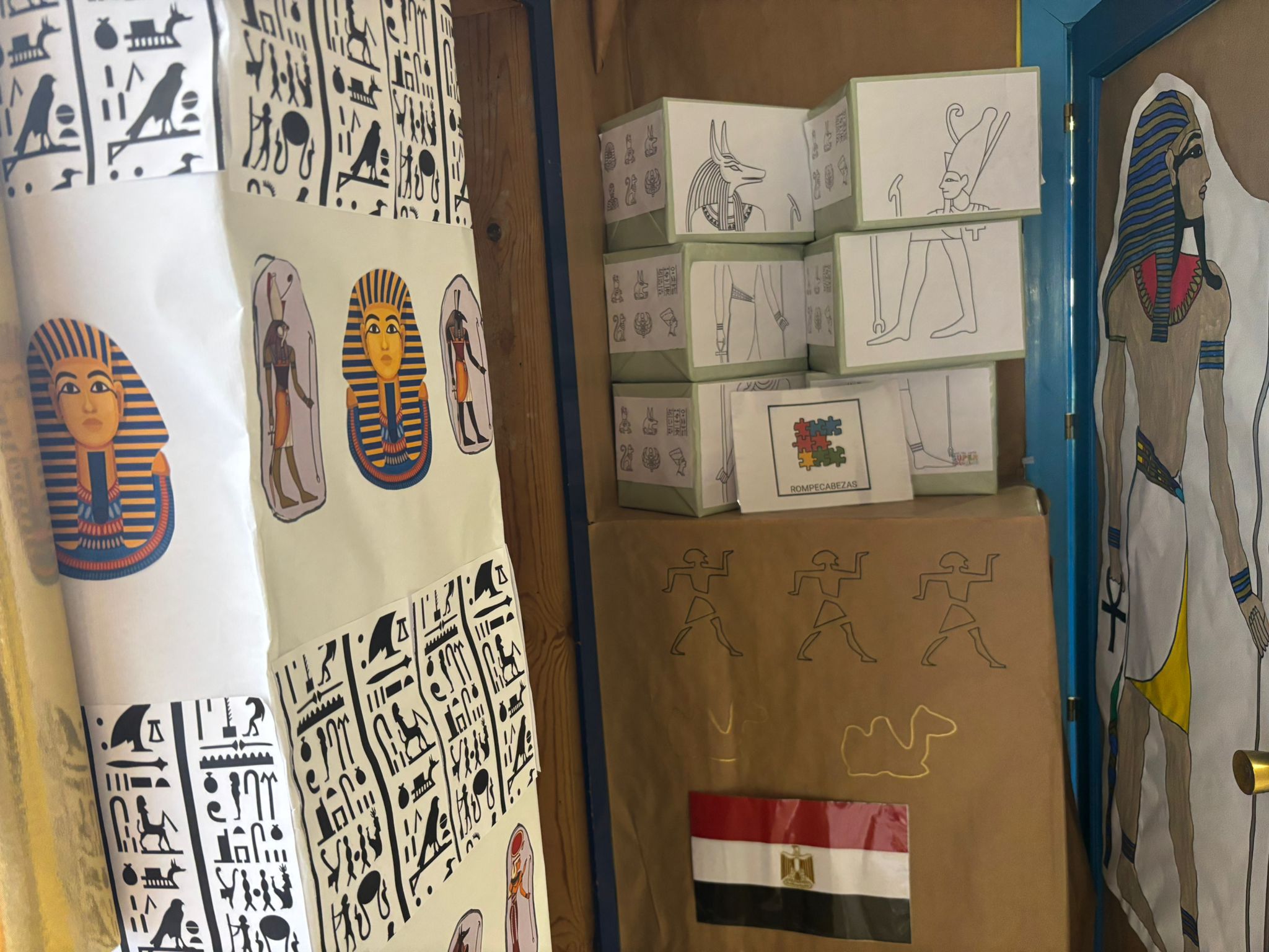 Así mismo hay zonas recreativas para que el alumnado pueda enriquecer su aprendizaje de una forma lúdica y relacionada con el proyecto. Uno de los juegos consiste en que, utilizando un modelo de jeroglíficos, los alumnos y alumnas escriban su nombre. Otro de ellos es un tres en raya tal y como hoy lo conocemos. El último es un rompecabezas con bloques que representan una figura humana egipcia.