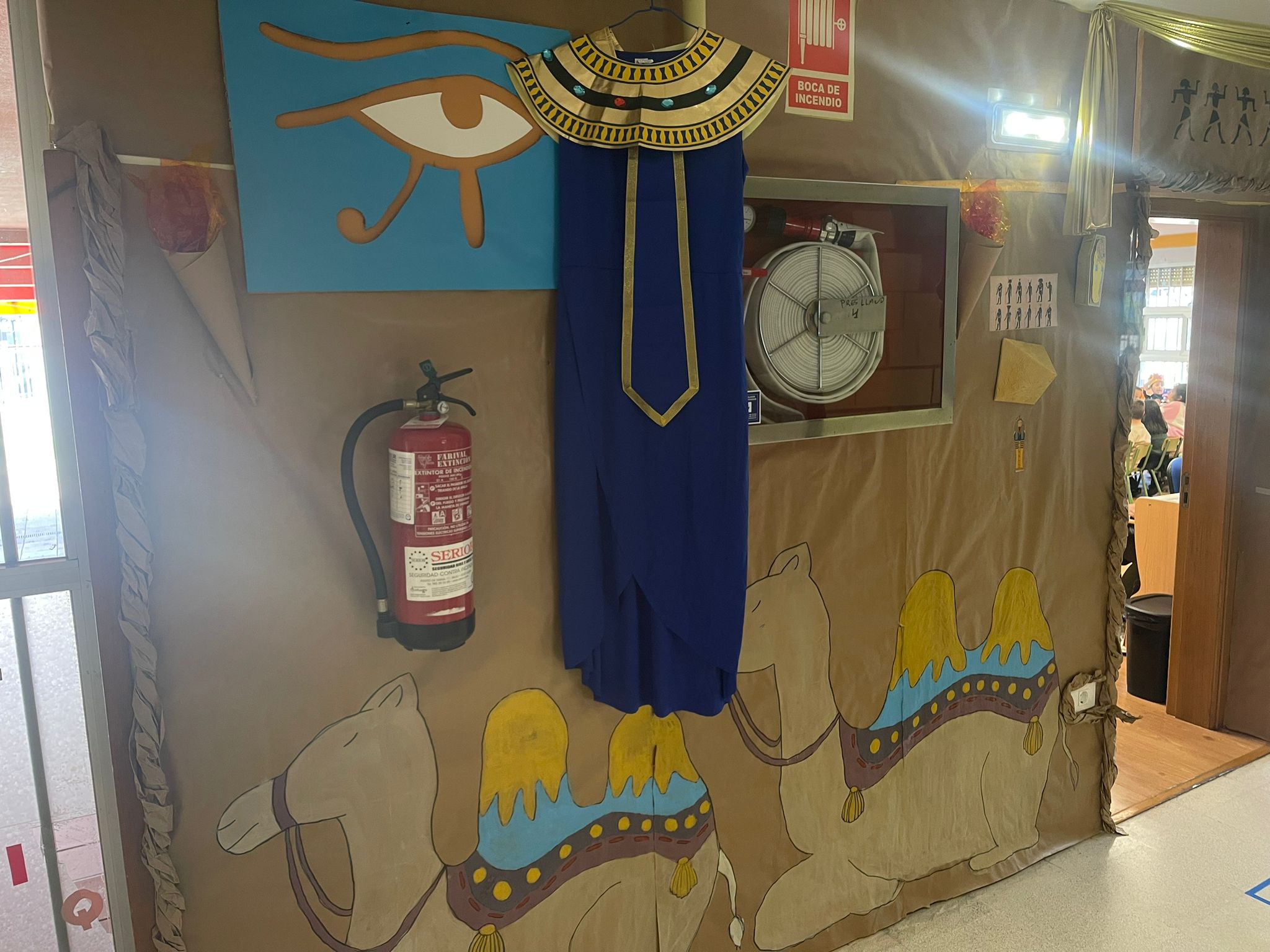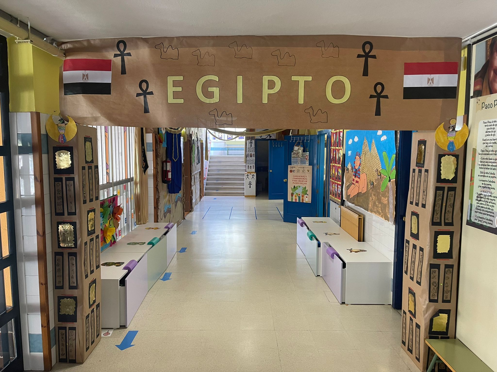 En la planta de abajo del centro se encuentra el espacio dedicado al país de Egipto. A modo de entrada se encuentra un cartel con el nombre del país, sus banderas y símbolos representativos del lugar. Más adelante se pueden observar las vestimentas características de los faraones, así como jeroglíficos, las pirámides de Giza, la Esfinge, una pirámide y figuras reales y mitológicas propias de Egipto.