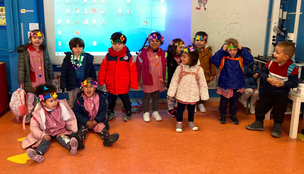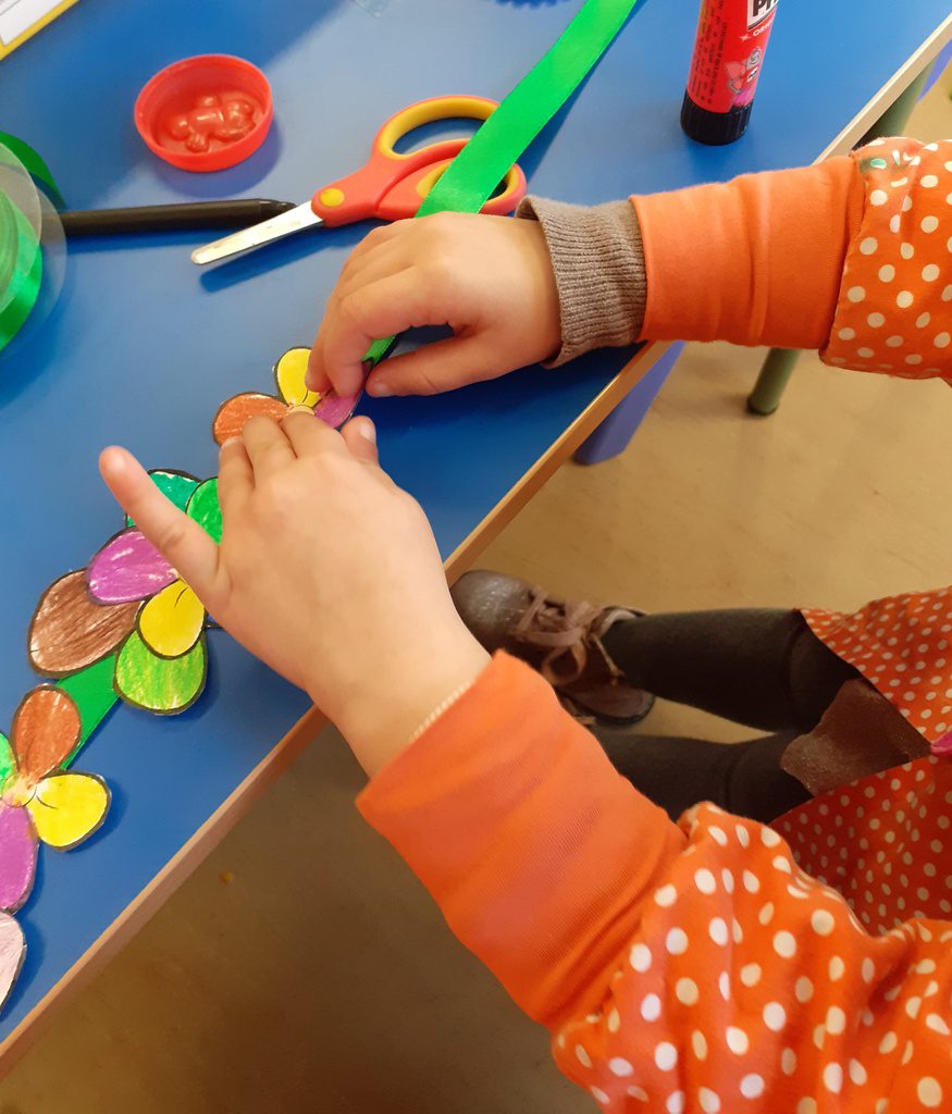 Un día nos hemos puesto unas cintas con flores como las de las xanas. Nos encanta, parece primavera.