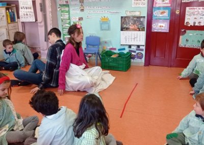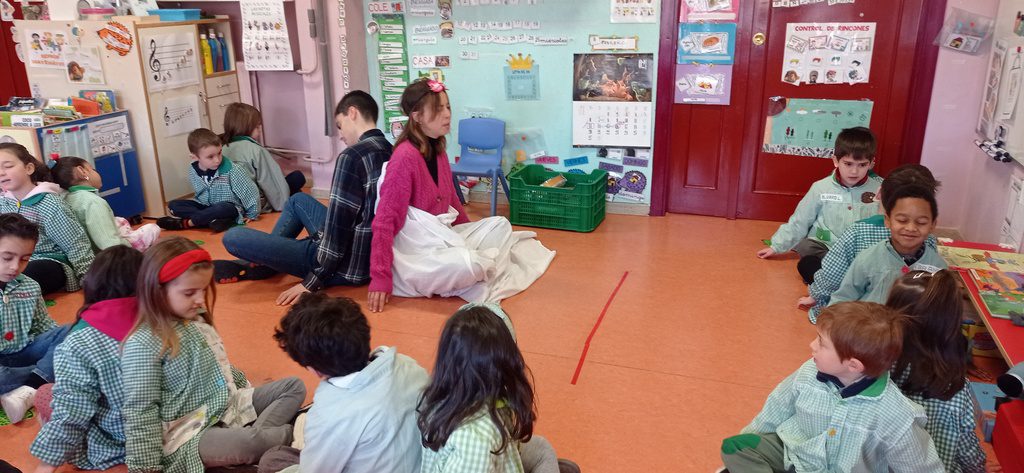 En la actividad de música y movimiento que se lleva a cabo en 5 años, hemos recibido una visita muy especial. Cantando bellas melodías ha aparecido una xana con su peine dorado.