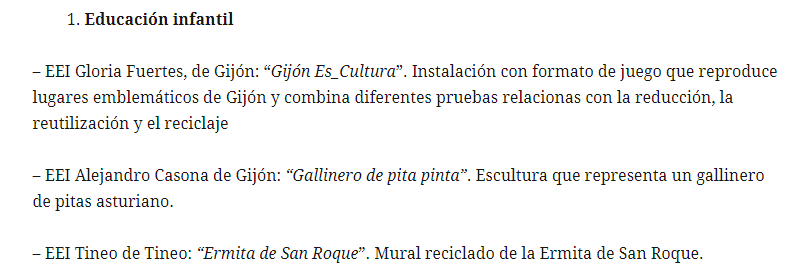 Proyectos presentados al concurso anual de la Red de Escuelas por el Reciclaje y que han sido premiados.