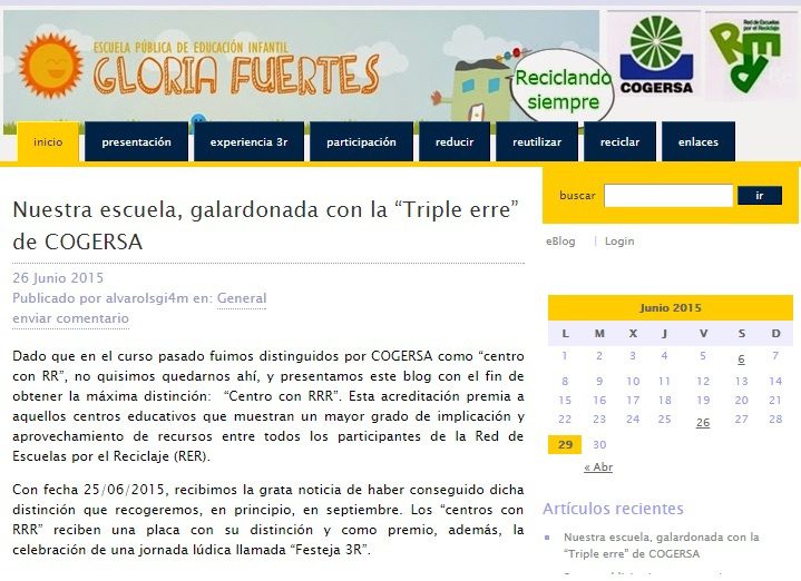 En el curso 2013- 2014 ganamos el primer premio por la categoría de Infantil en el Concurso promovido por COGERSA: Reducir, reutilizar y reciclar en comunidad.