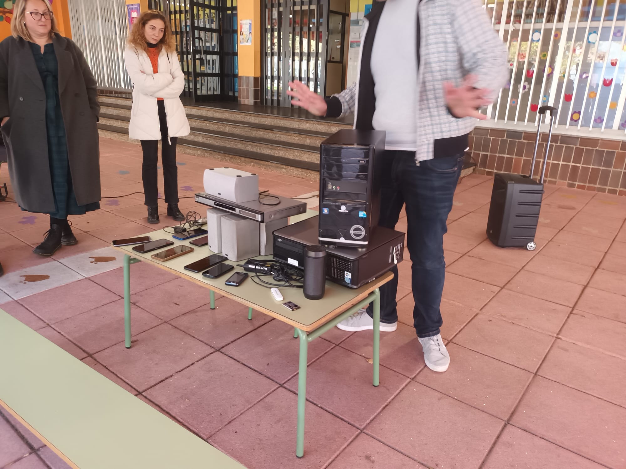 Javier García Gutiérrez, nuestro técnico de mantenimiento de la empresa ABEND, nos hizo una demostración de cómo acceder al disco duro de un PC y a la tarjeta del móvil para perder el miedo a entregar un dispositivo con información. Y nos explicó cómo y dónde reciclarlos correctamente.
